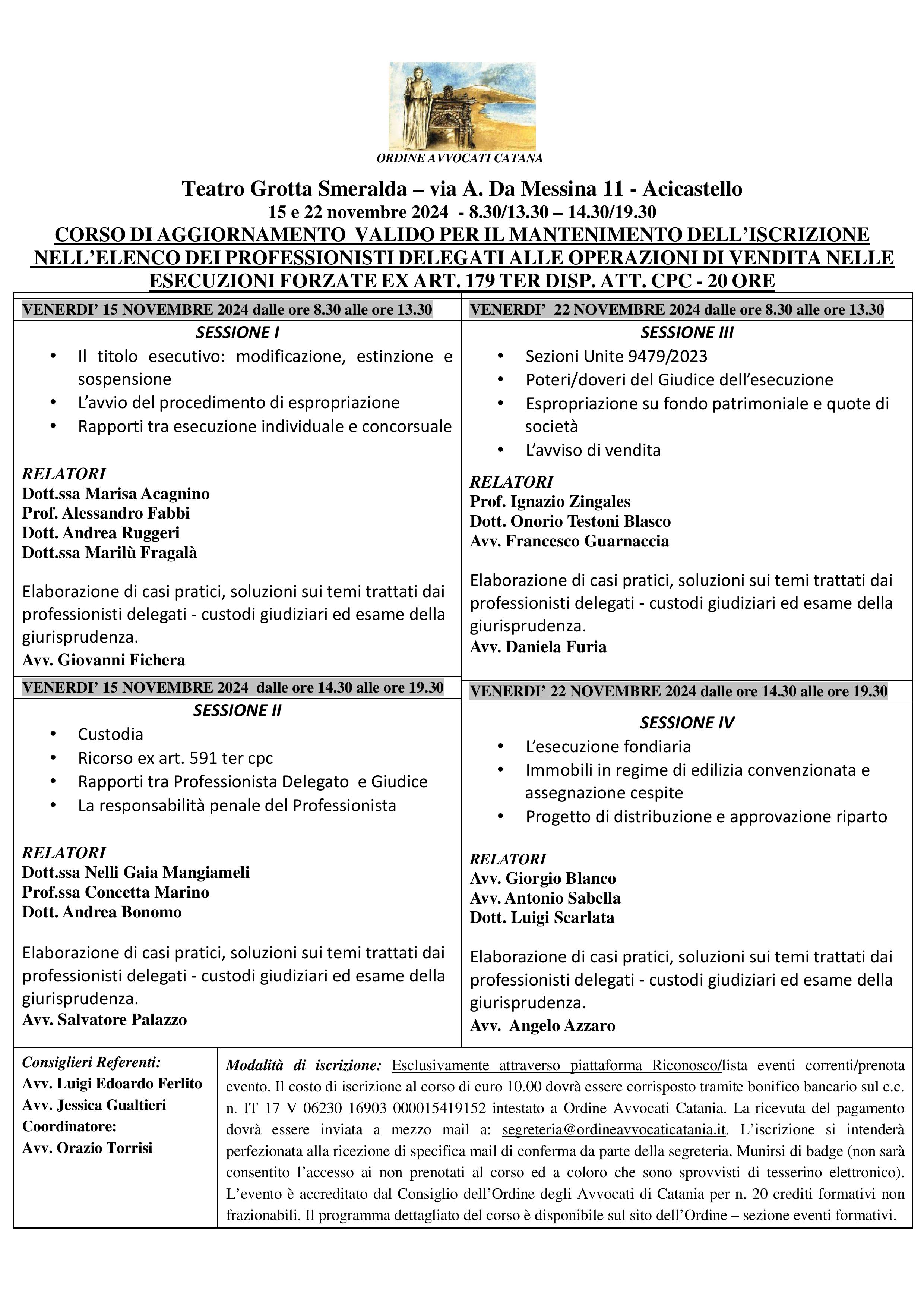 Corso di aggiornamento per il mantenimento del titolo dei professionisti delegati alle vendite negli elenchi ex Art. 179 ter Disp. Att. C.P.C.