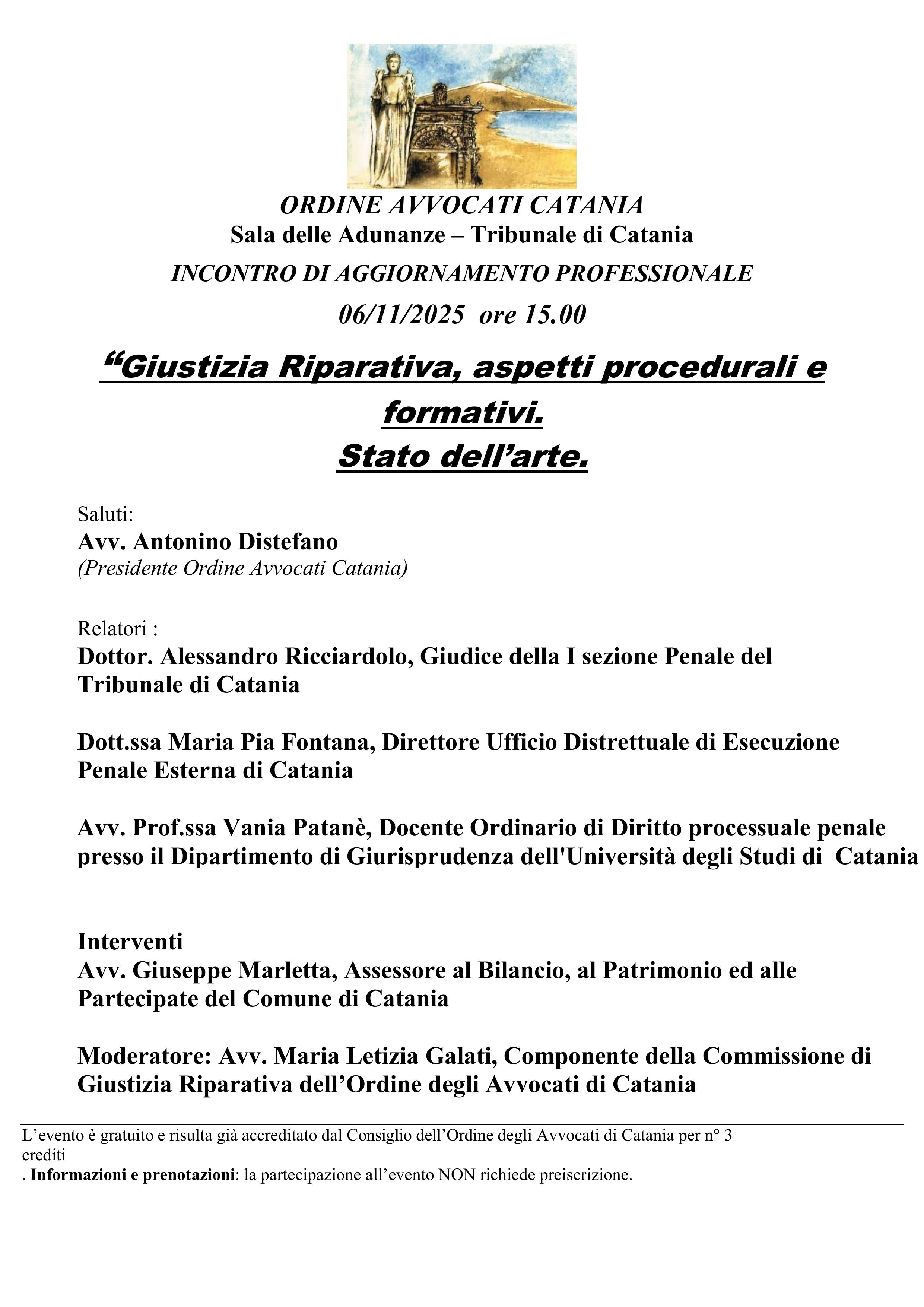 Organizzatore: Commissione di Giustizia Riparativa del COA di Catania