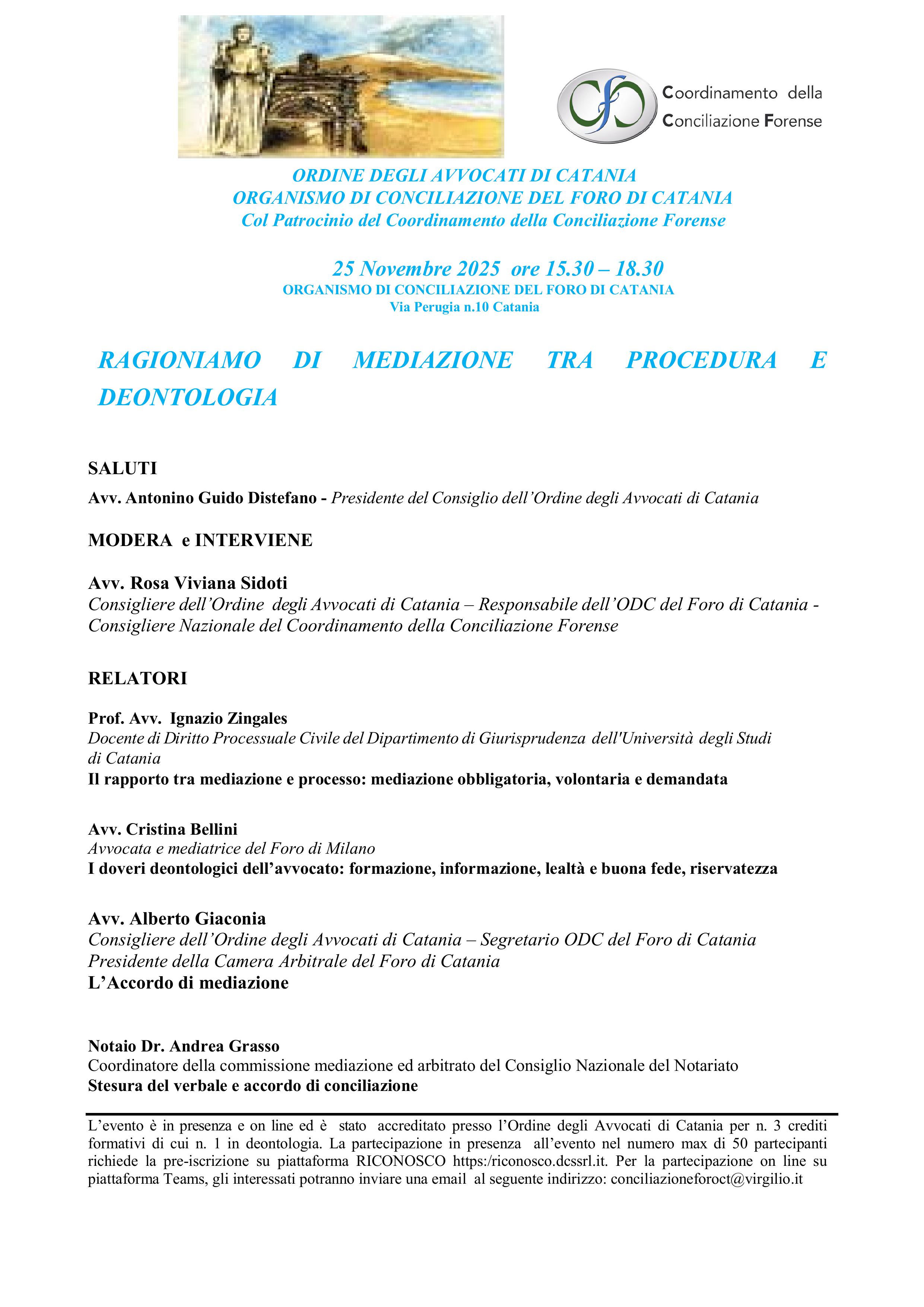 Organizzatore: Organismo di Conciliazione del Foro di Catania