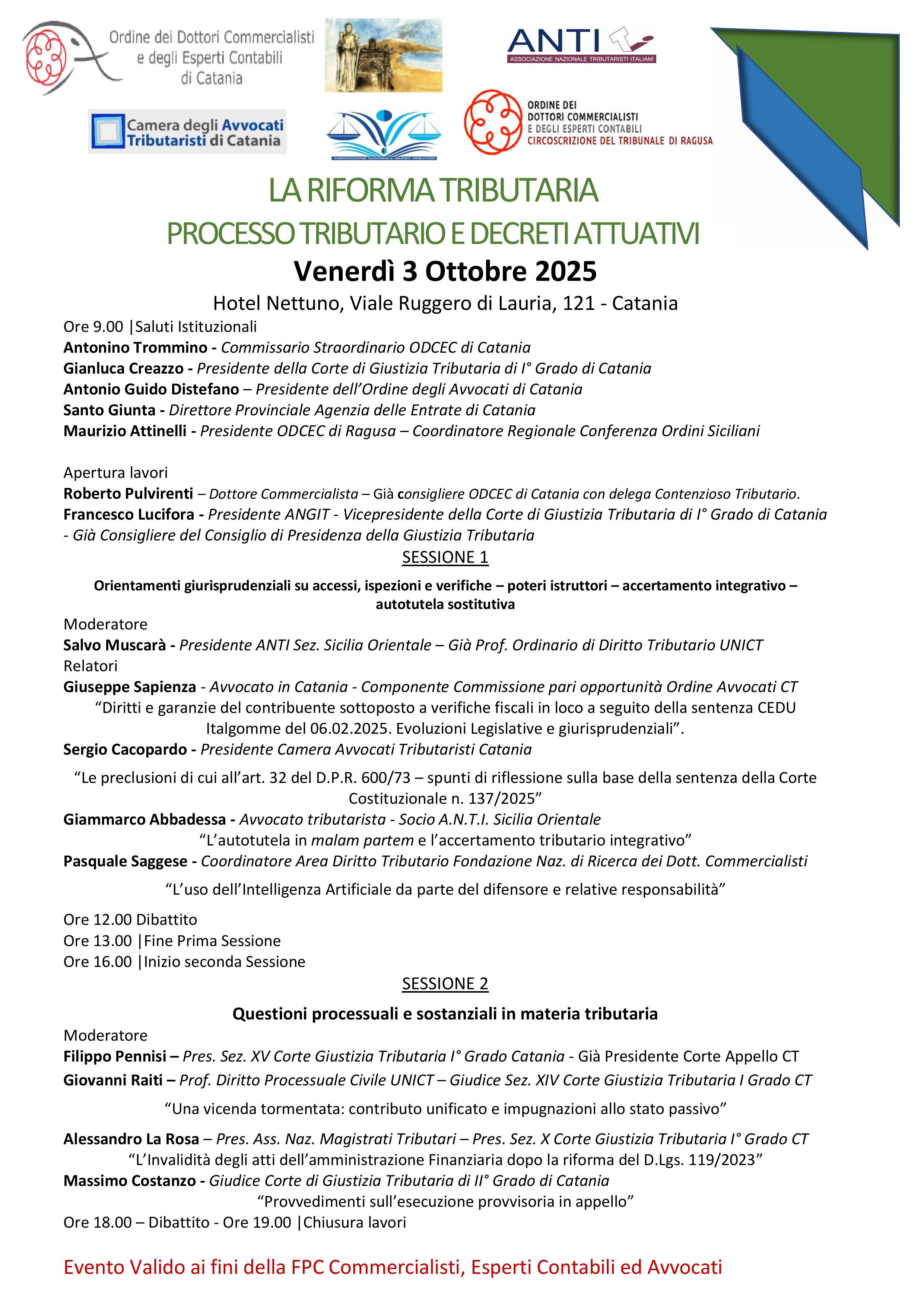 Organizzatore: ODCEC - Ordine Dottori Commercialisti ed Esperti Contabili di Catania