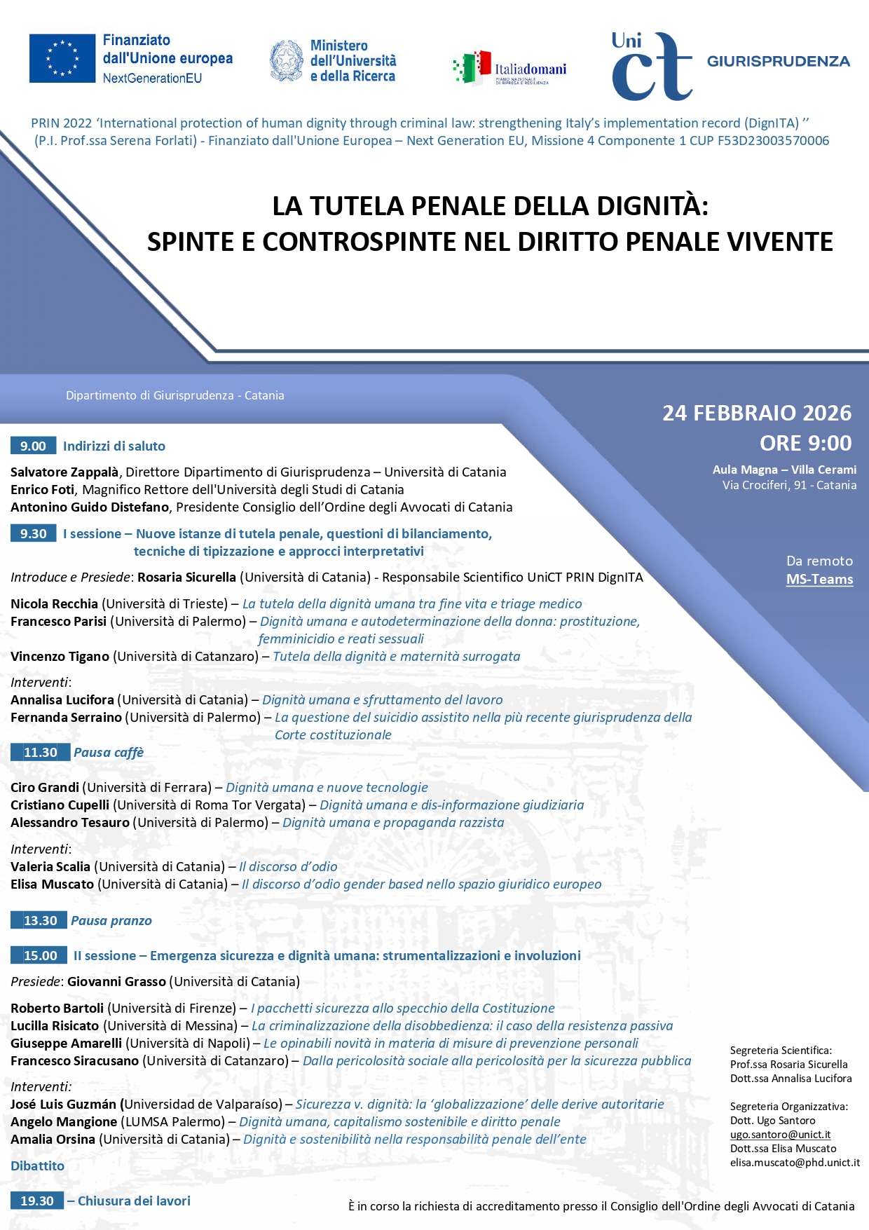 Luogo: Dipartimento di Giurisprudenza - Aula Magna - Catania